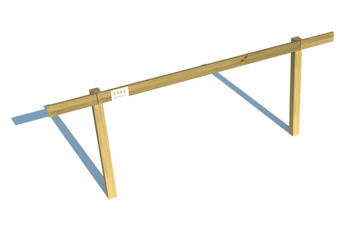 Valla de madera Post and Rail, de un travesaño de tablón de 19,5x4,5cm, con postes cuadrados de 7x7 o 9x9cm para empotrar en hormigón o fijar con platinas. Altura vista de la valla 1m.